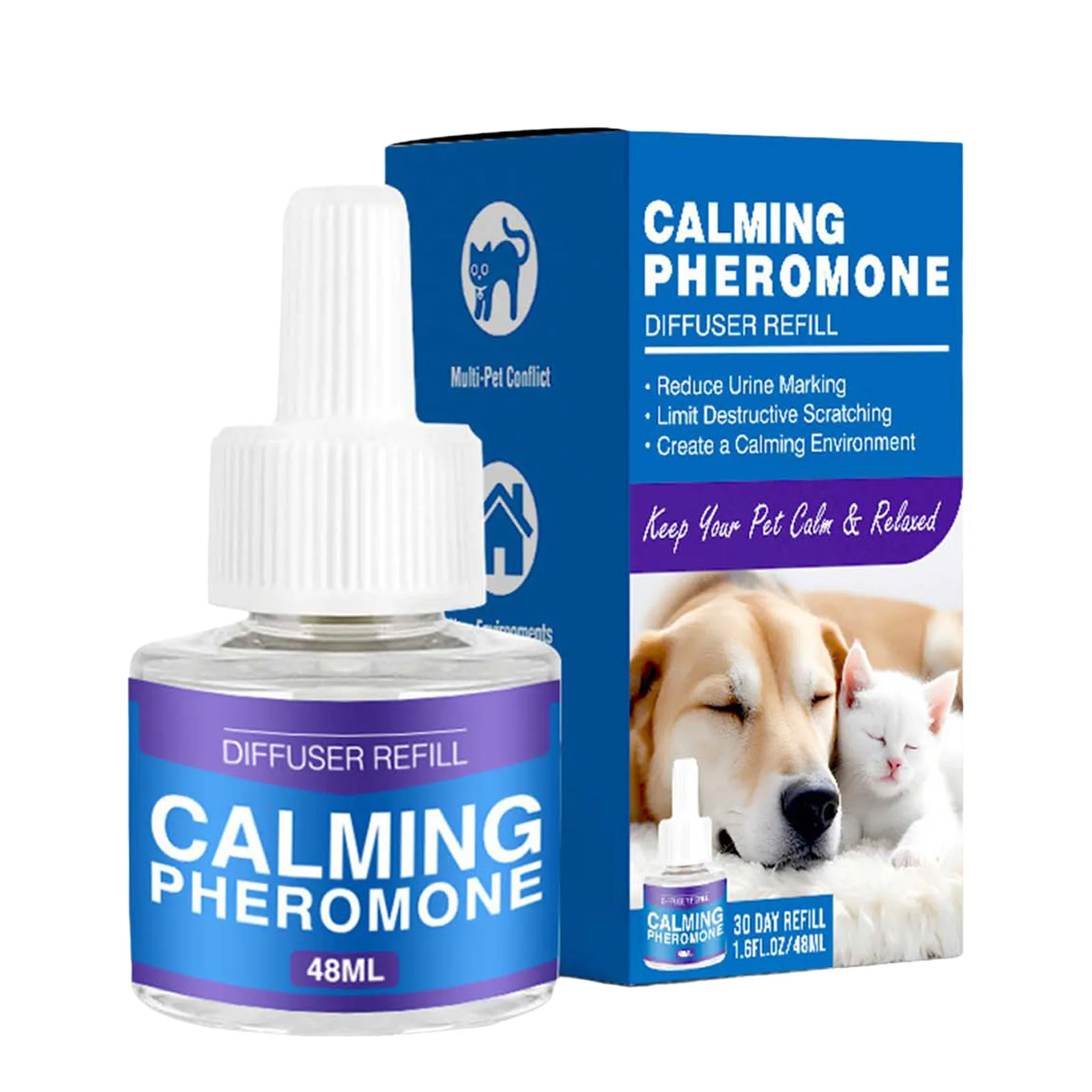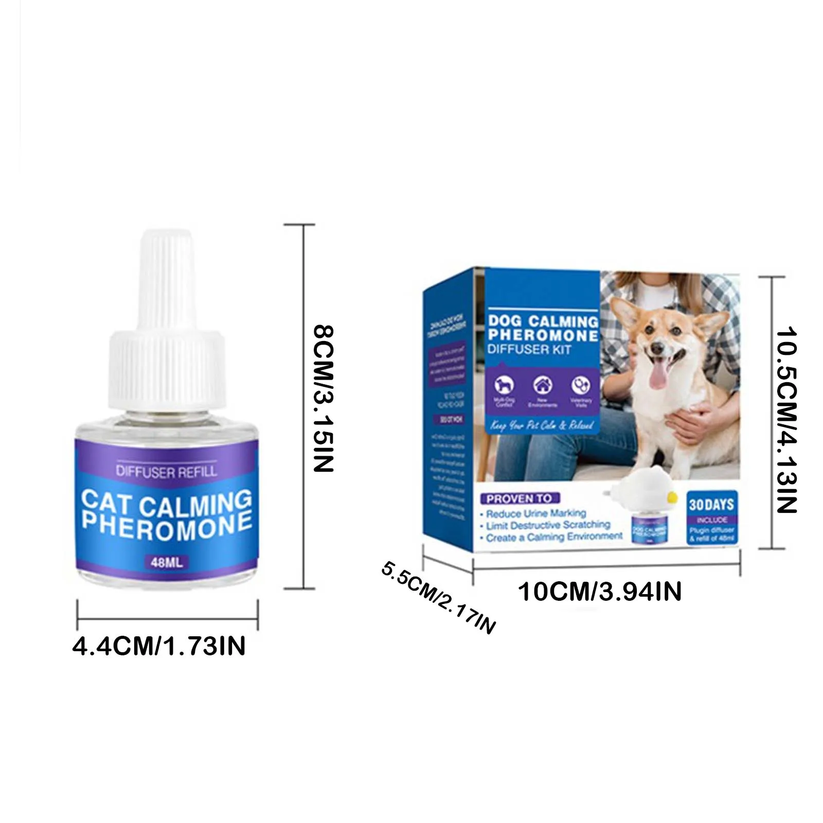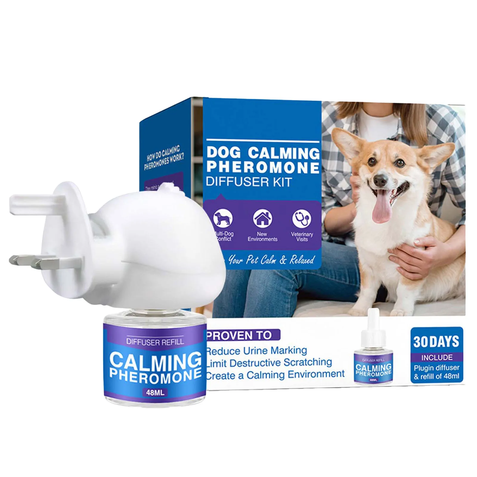 Help your dog feel calm and relaxed with this dog calming pheromone diffuser. Designed to reduce stress and anxiety, it releases soothing pheromones throughout your home. Ideal for dogs that experience scratching, barking, or nervous behavior. The plug-in design provides continuous calming support for up to 30 days. Easy to use by simply inserting the 48ml refill and plugging it into a standard outlet. Safe and effective for daily use in any indoor space. Helps create a peaceful environment during stressful situations like separation or loud noises. Suitable for dogs of all sizes and breeds. Compact and discreet design fits easily into any room. A simple and effective solution for improving your dog’s behavior and comfort.